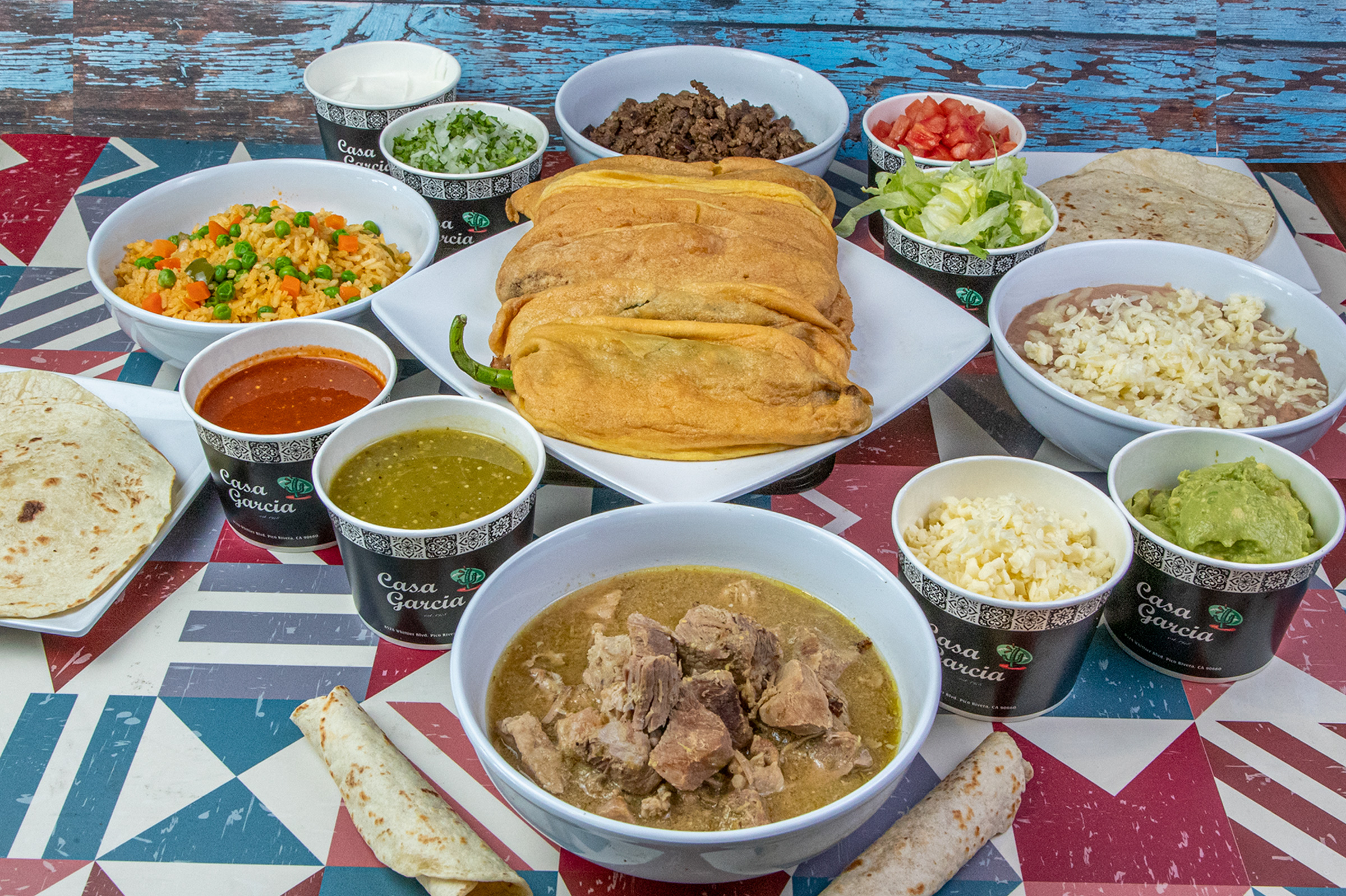 (Beans, rice, guacamole, side salad, (3) tortillas)